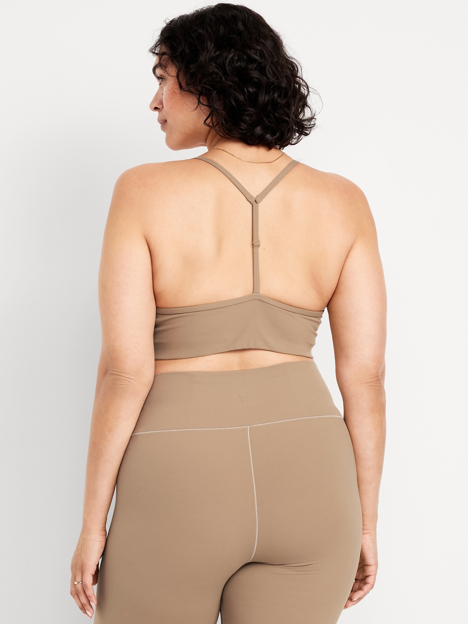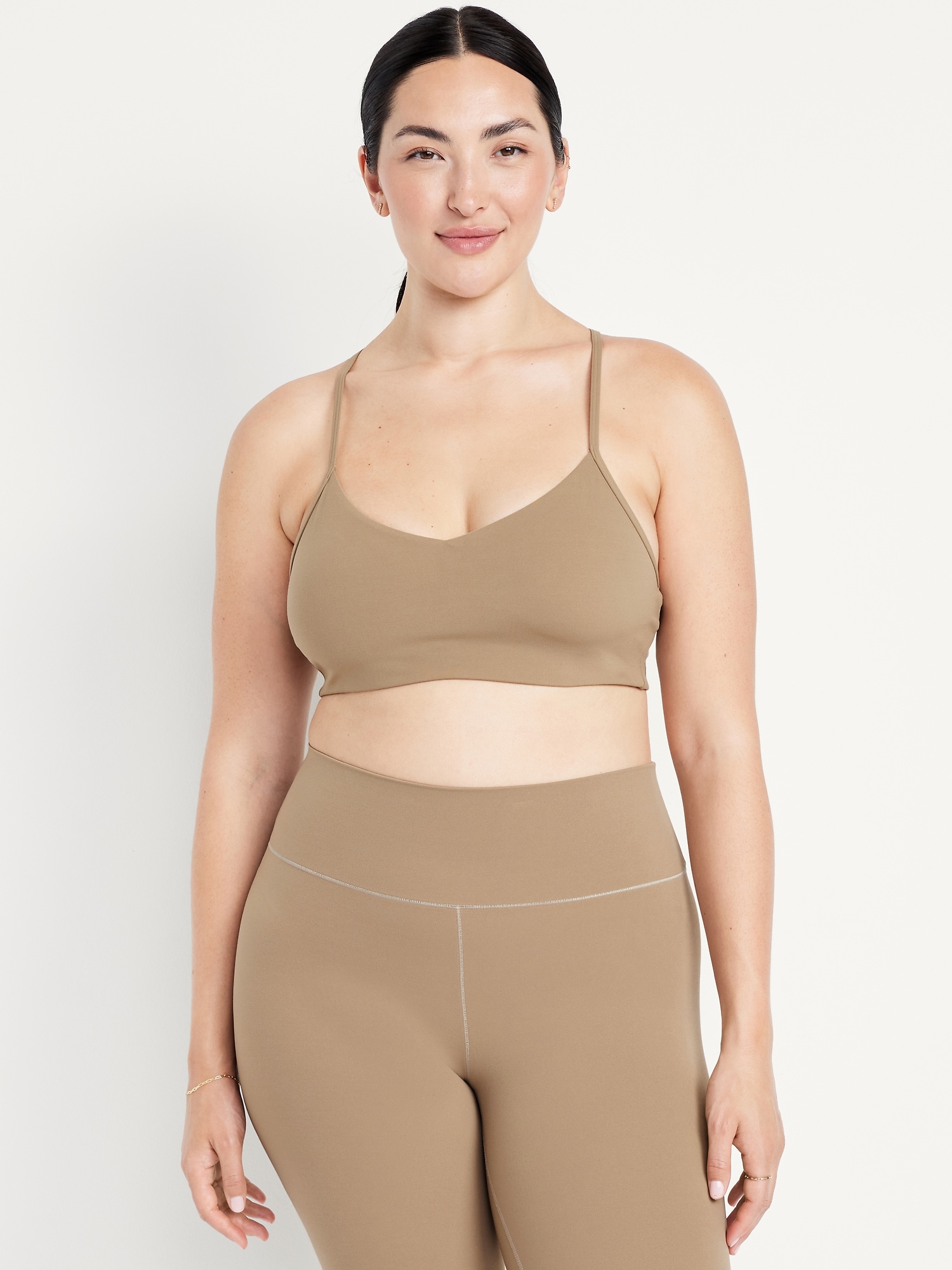 Light Support StudioSmooth Racerback Sports Bra: Featuring StudioSmooth. Buttery soft and breathable, with a barely-there feel.v-neck, adjustable racerback straps, shelf bra, removable pads, go-dry wicks moisture, #749262