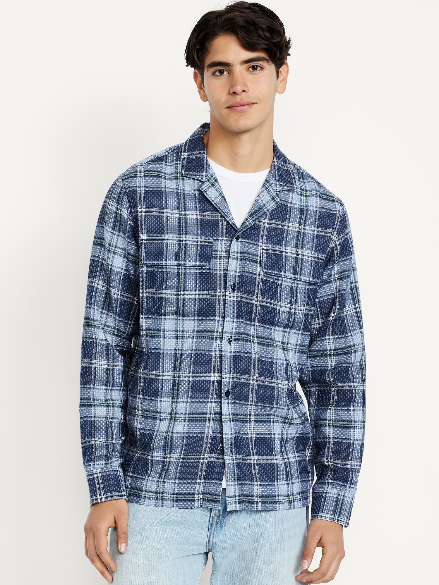 Lightweight Plaid Pocket Shirt: notched collar, long sleeves, button-flap chest pockets, full-button front, plaid print, #762451