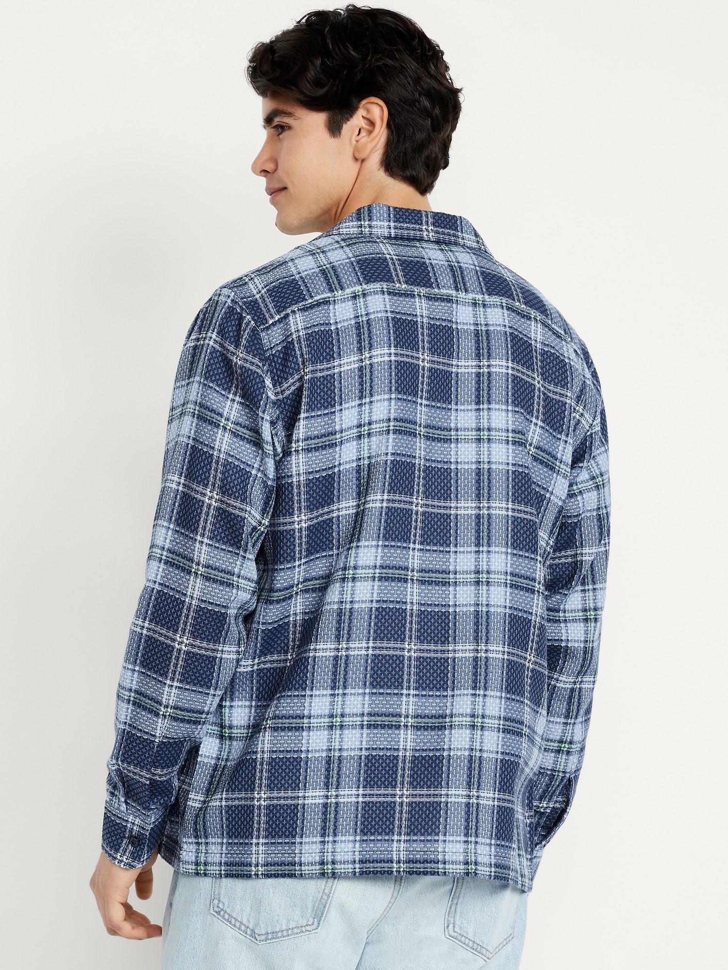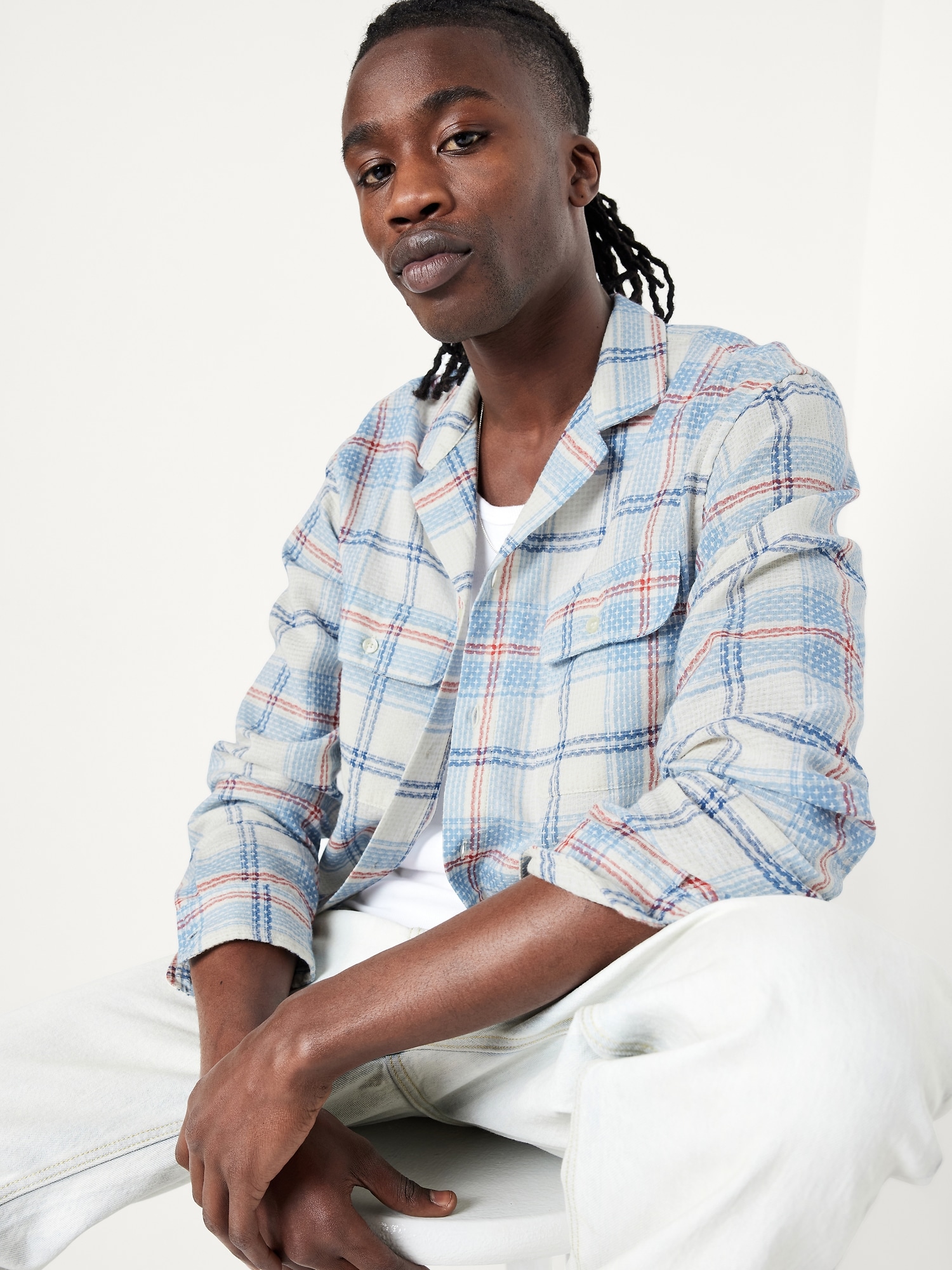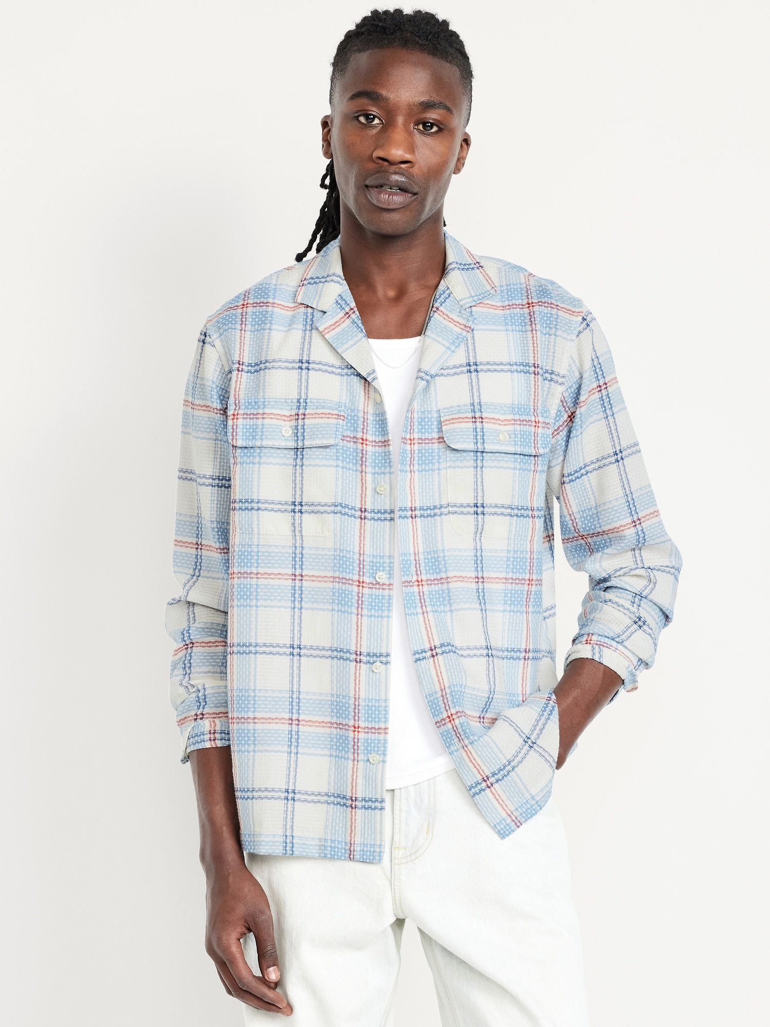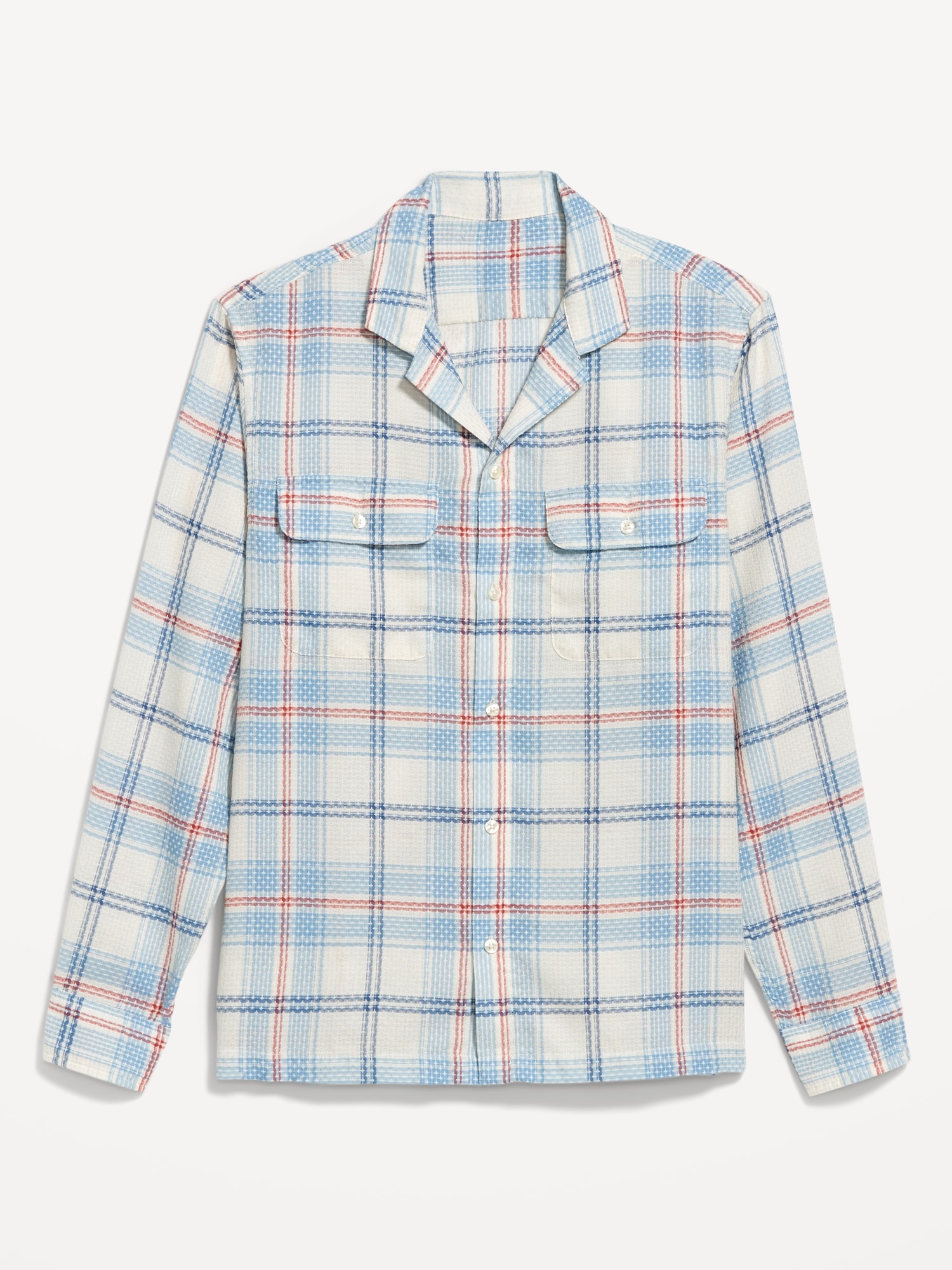 Lightweight Plaid Pocket Shirt: notched collar, long sleeves, button-flap chest pockets, full-button front, plaid print, #762451
