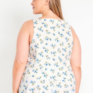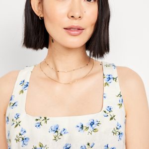 Linen-Blend Crop Top: square neck, sleeveless, darted bust, #756733