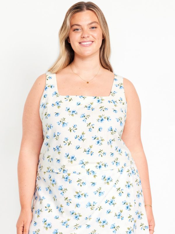 Linen-Blend Crop Top: square neck, sleeveless, darted bust, #756733
