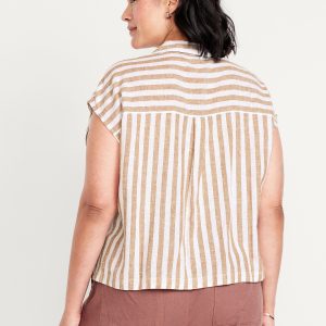 Linen-Blend Cropped Popover Shirt