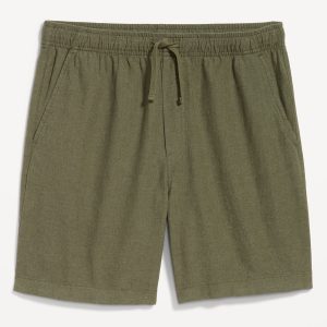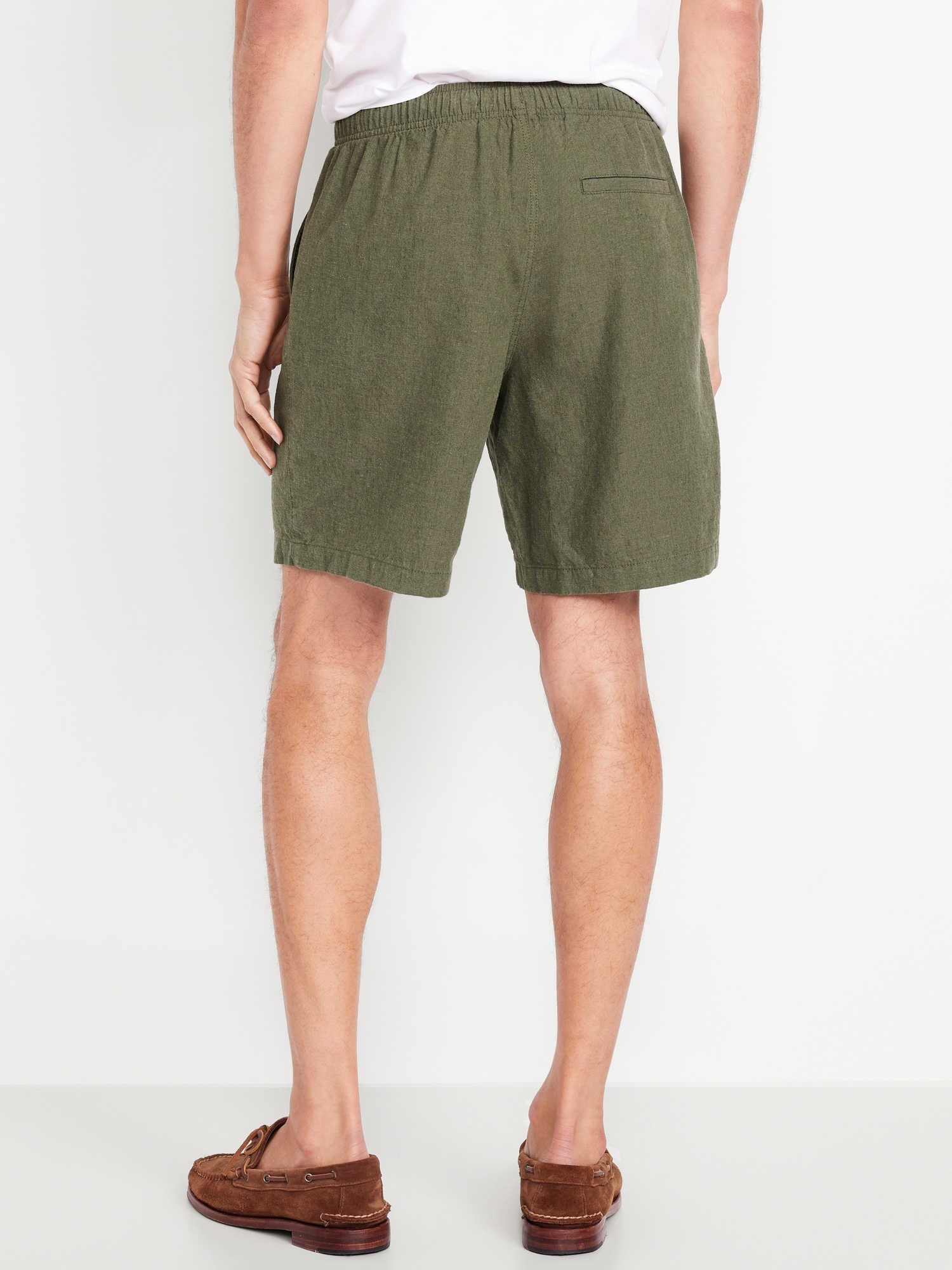 Linen-Blend Jogger Shorts — 7-inch inseam: elastic-drawstring waistband, diagonal hip pockets, back right welt pocket, #695576
