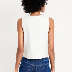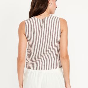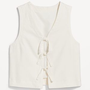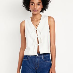 Linen-Blend Tie-Front Vest