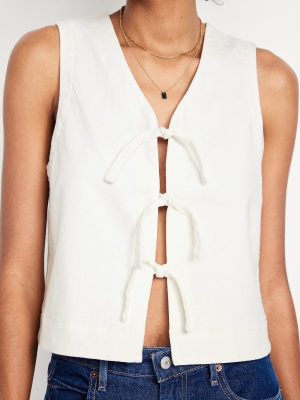 Linen-Blend Tie-Front Vest