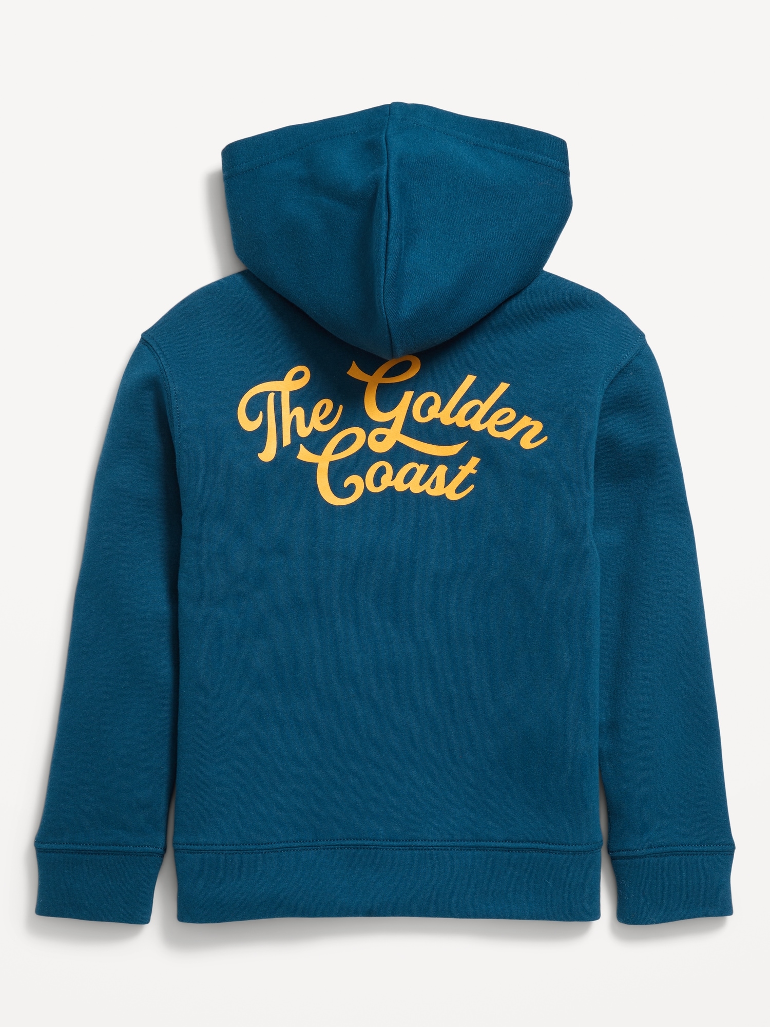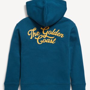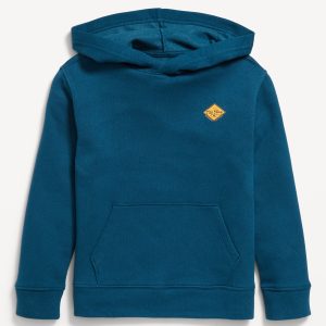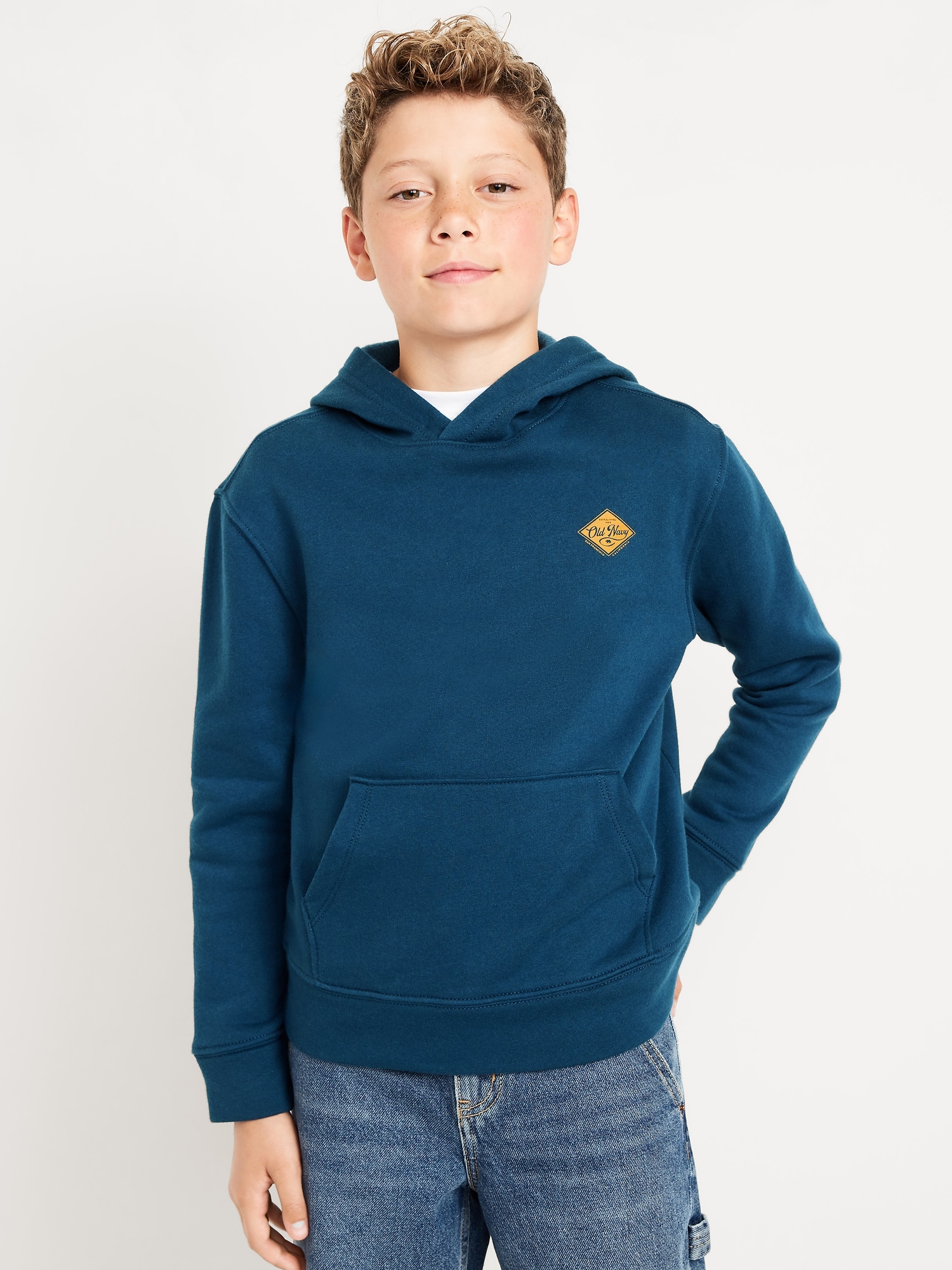 Logo-Graphic Pullover Hoodie for Boys: built-in hood, long sleeves, logo graphic at front, kangaroo pocket, banded hem, easy pullover style, #856152