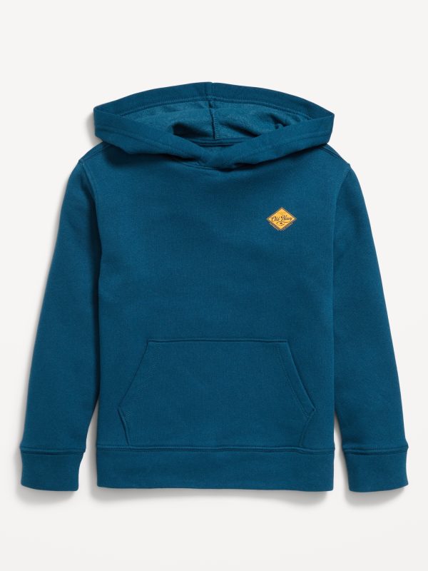 Logo-Graphic Pullover Hoodie for Boys: built-in hood, long sleeves, logo graphic at front, kangaroo pocket, banded hem, easy pullover style, #856152