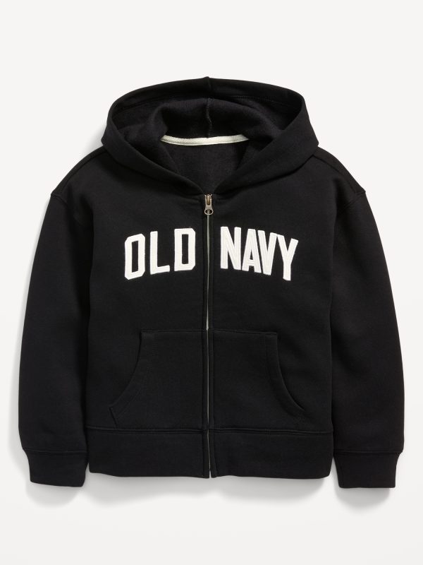 Logo-Graphic Zip Hoodie for Girls: built-in hood, long sleeves, full-length front zipper, embroidered logo graphic, banded hem, #871012