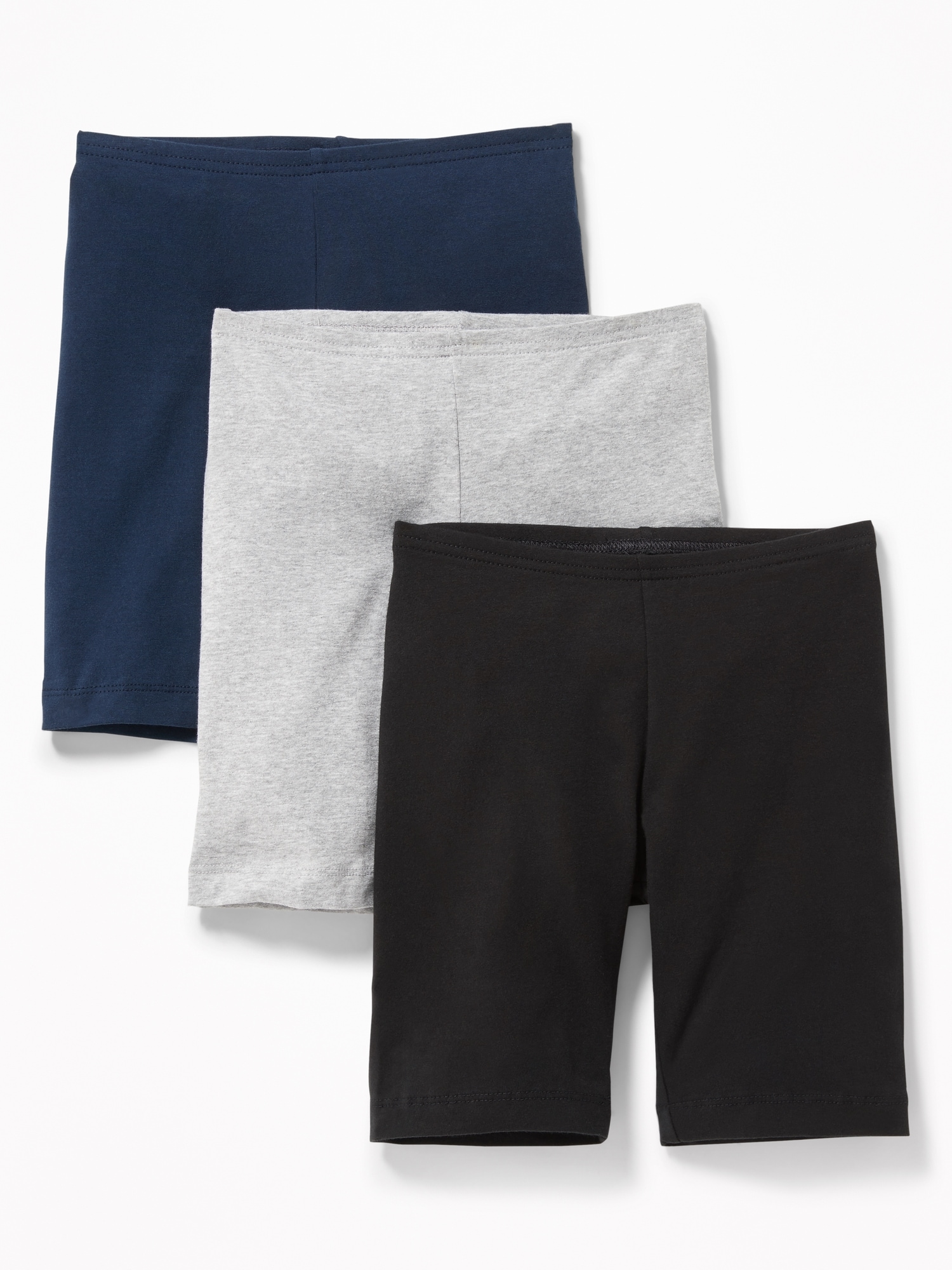 Long Jersey Biker Shorts 3-Pack For Girls: Online exclusive!, Pack includes 3 pairs of long jersey biker shorts, each in a different color., Elasticized waistband., Super-soft, lightweight cotton jersey, with comfortable stretch., Longer length for more coverage., Tag-free label inside back waist for added comfort., #448499