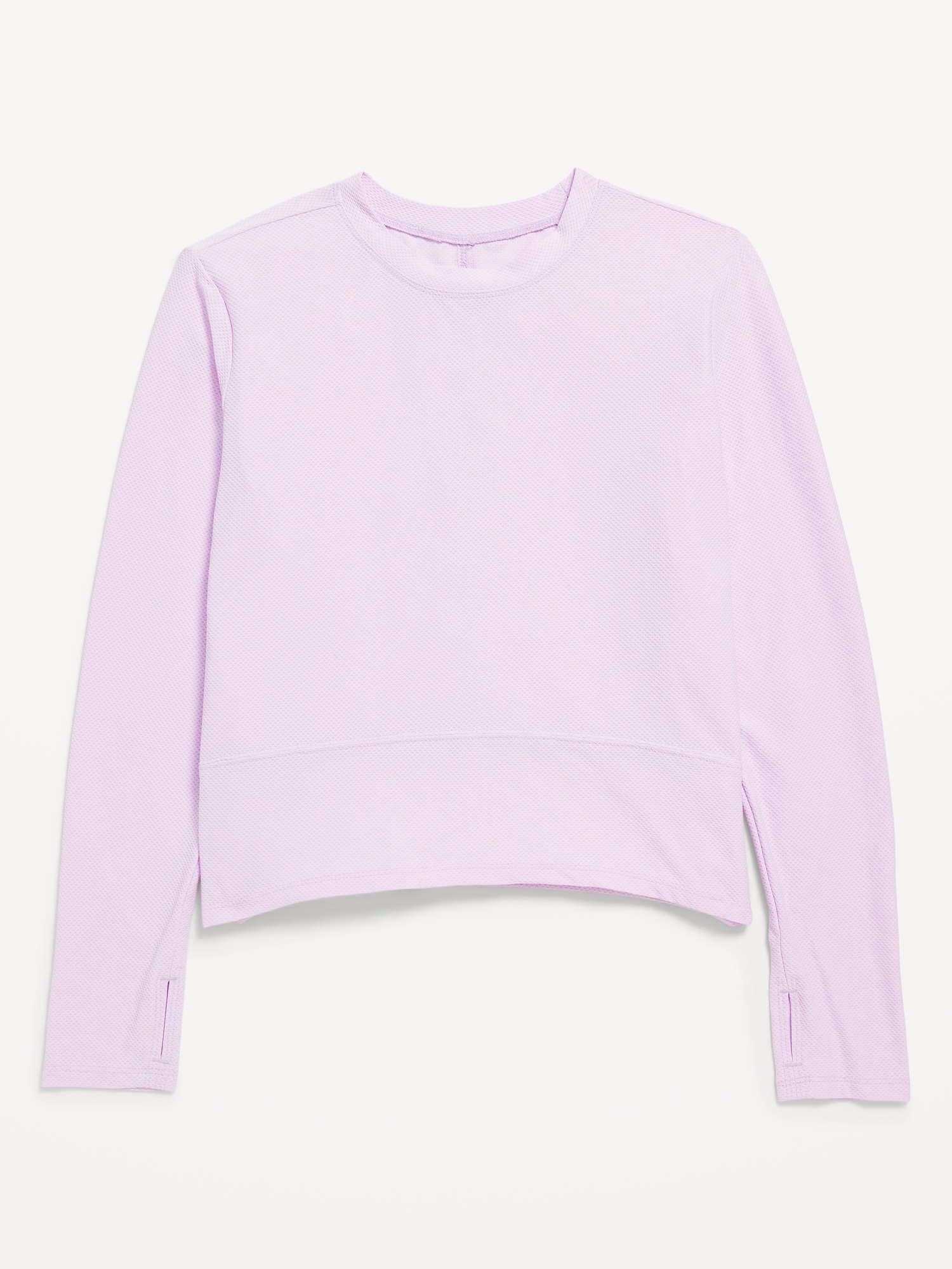 Long-Sleeve Curved-Hem Performance Top for Girls