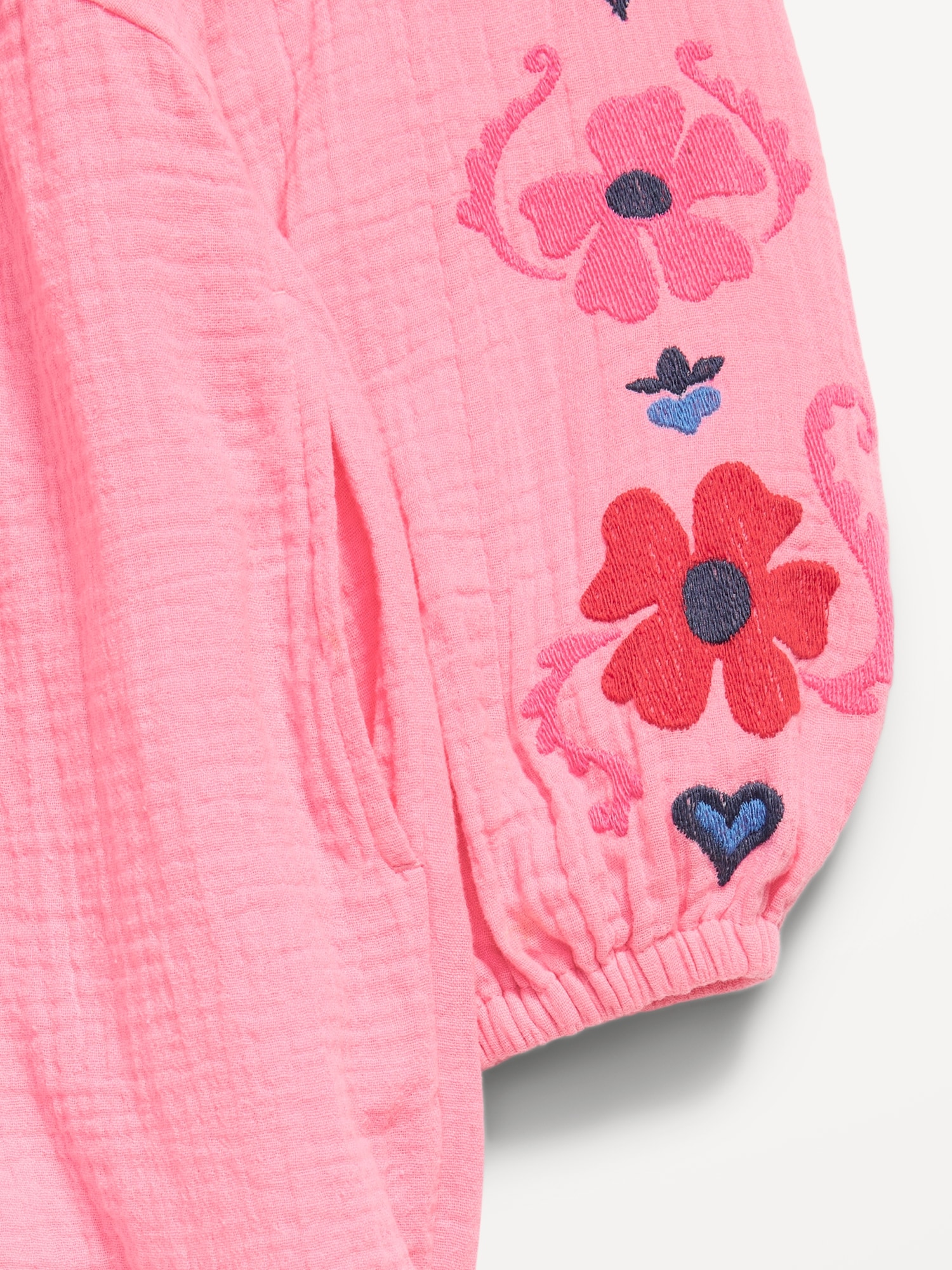 Long-Sleeve Double-Weave Embroidered Swing Dress for Girls