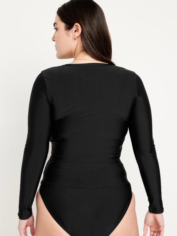 Long-Sleeve Matte Rashguard Swim Top: crew neck, long sleeves, #865251