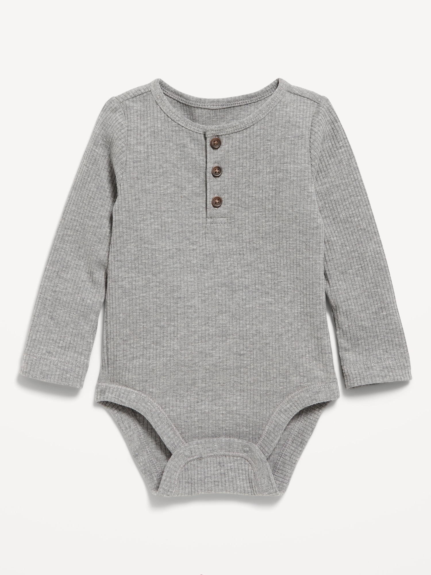 Long-Sleeve Ribbed Henley Bodysuit for Baby