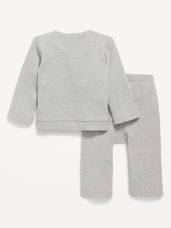 Long-Sleeve Ribbed Pocket T-Shirt and Pants Set for Baby