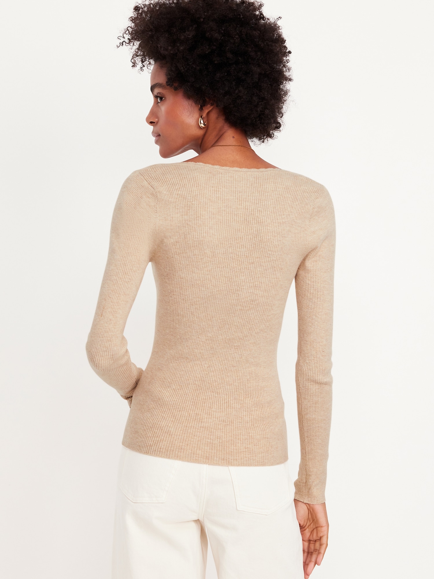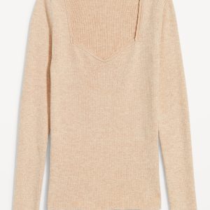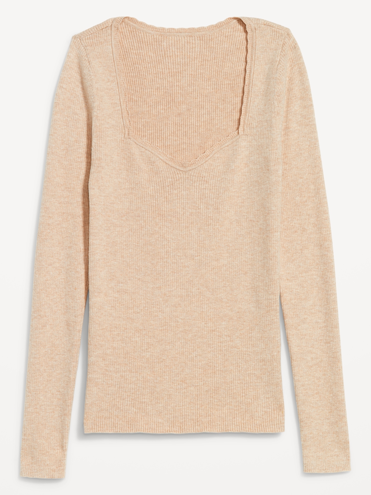 Long-Sleeve Ribbed Sweater: sweetheart neckline, long sleeves, pullover style, #576694
