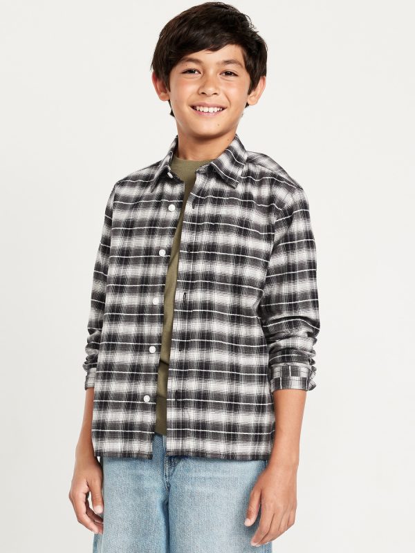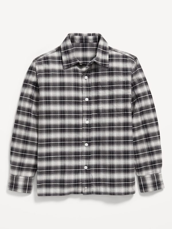 Long-Sleeve Textured Plaid Pocket Shirt for Boys