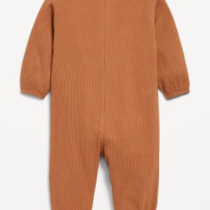 Long-Sleeve Waffle-Knit Henley One-Piece for Baby
