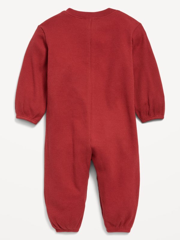 Long-Sleeve Waffle-Knit Henley One-Piece for Baby