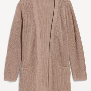 Longline Open-Front Sweater: long sleeves, patch pockets, vented sides, #784424