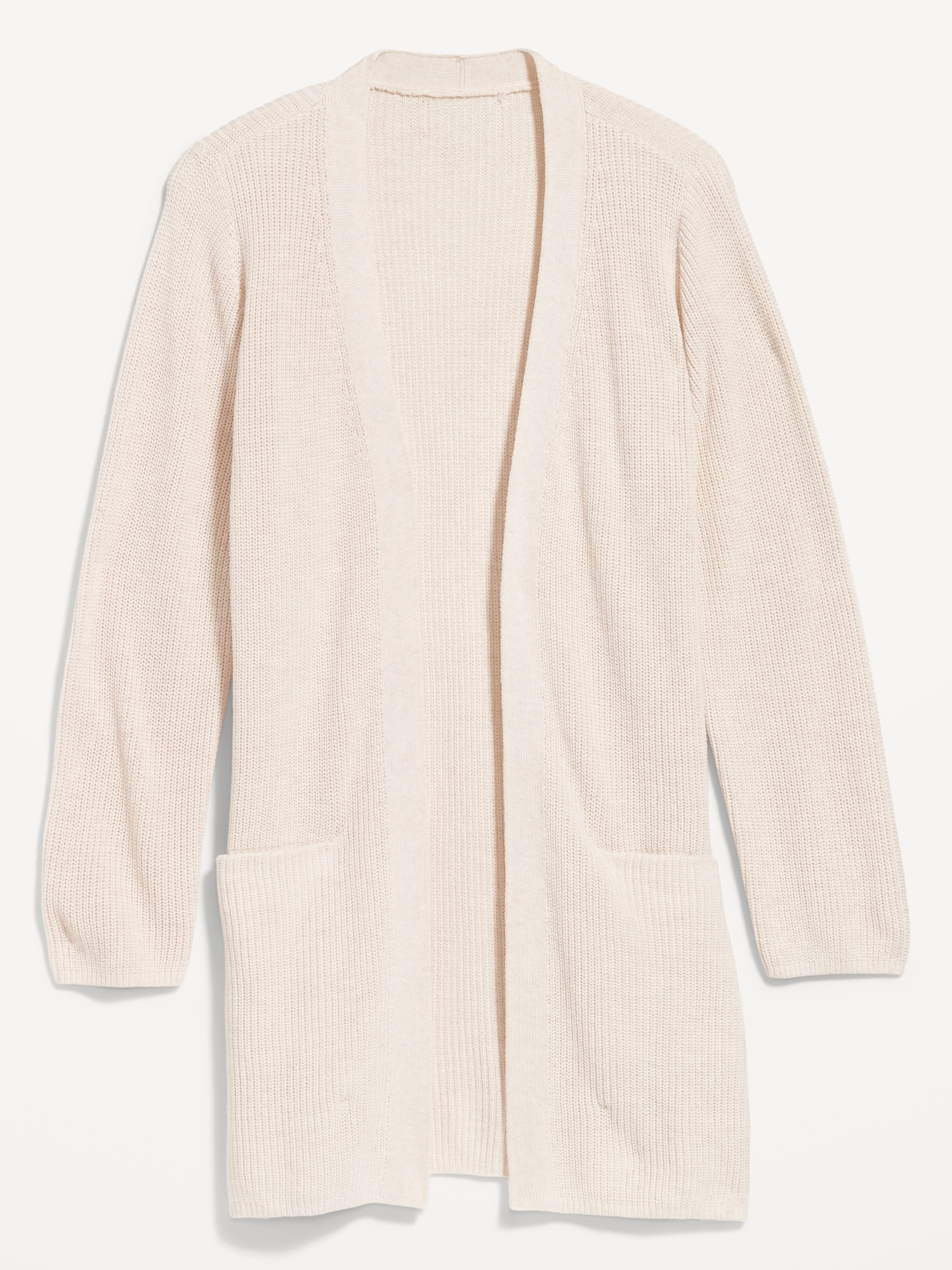 Longline Open-Front Sweater: long sleeves, patch pockets, vented sides, #784424