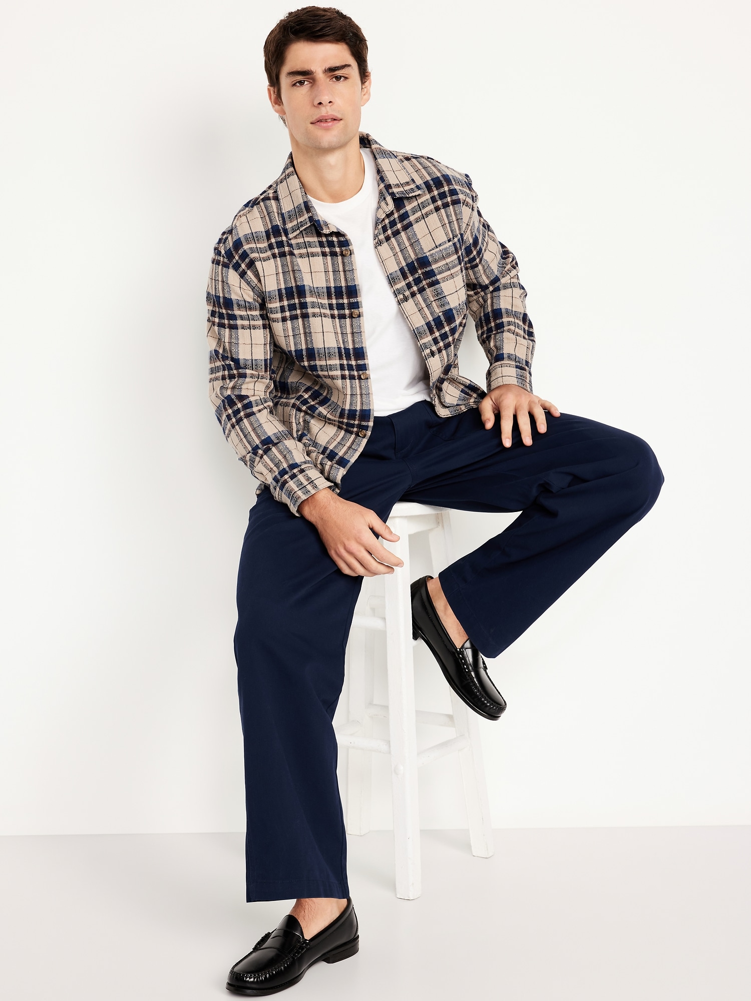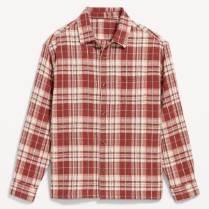 Loose Fit Plaid Pocket Shirt: spread collar, long sleeves with buttoned cuffs, full-button front, patch chest pocket, plaid print, #762448