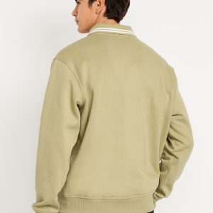 Loose Fleece Polo: rib-knit collar, long sleeves, snap placket, rib-knit cuffs and hem, pullover style, #787707