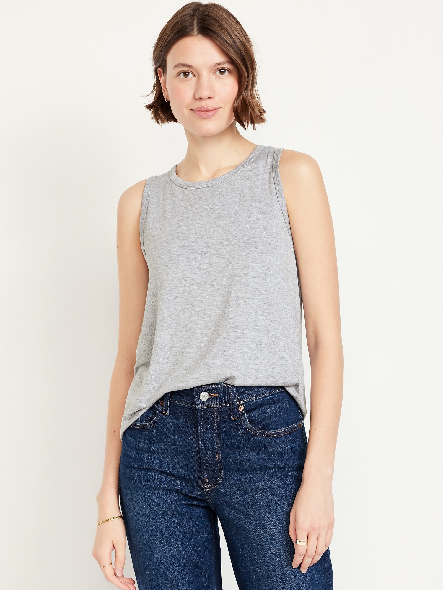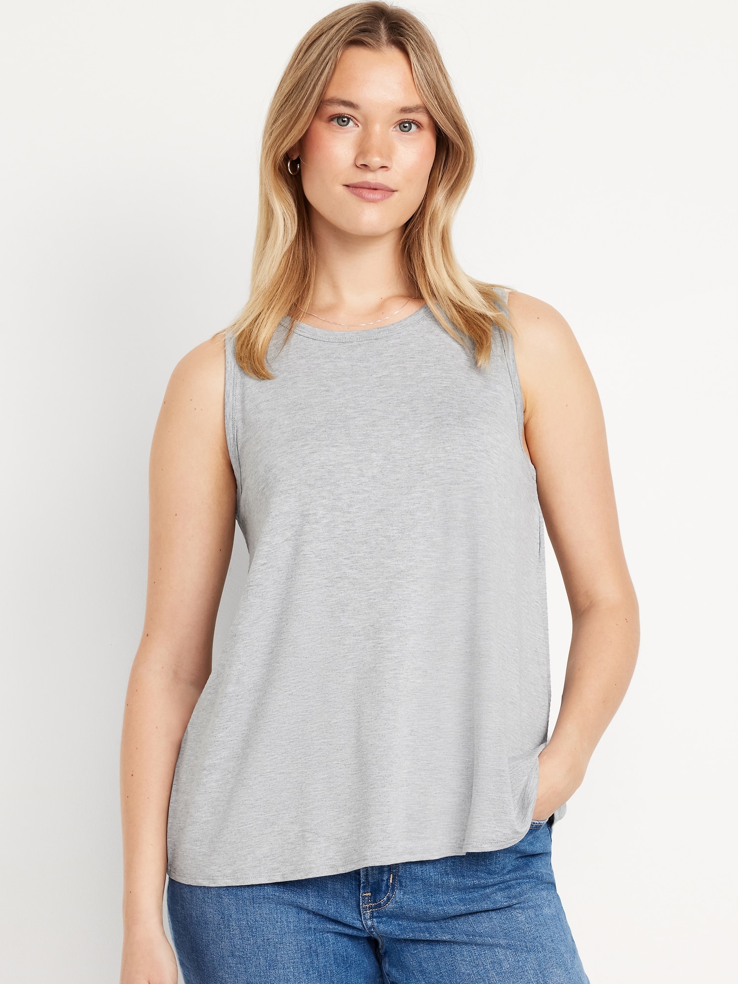 Luxe Sleeveless Top: A draped, flawless fit that’s ultra soft.crew neck, sleeveless, rib-knit trim, #790940