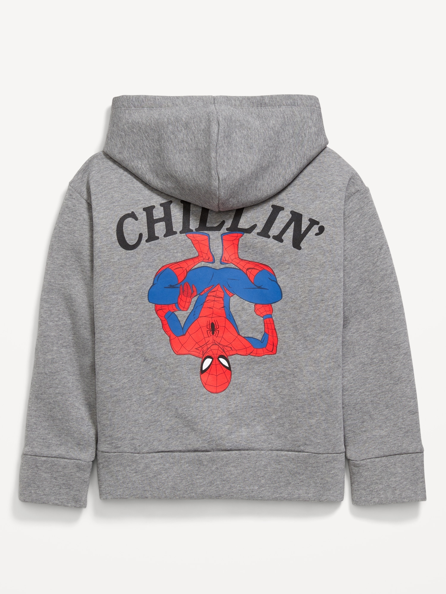 Marvel™ Spider-Man Gender-Neutral Graphic Pullover Hoodie for Kids: built-in hood, long sleeves, small-scale licensed graphic at front, large-scale licensed graphic, hand-warming pockets, MARVEL, Marvel Comics™ & © 2025 Marvel Entertainment, LLC and its subsidiaries. Licensed by Marvel Characters B.V. All rights reserved., #761767