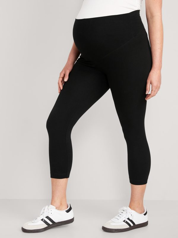 Maternity 2-Pack Full-Panel Cropped Jersey Leggings: Pack includes 2 pairs of cropped leggings, each in a different color., Elasticized full panel waistband., Soft cotton jersey, with comfortable stretch., Easy pull-on style., Tag-free label inside back waist for added comfort., #784570