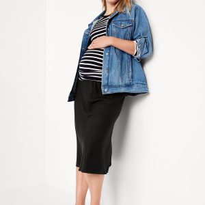 Maternity A-Line Midi Skirt: perfect for baby shower, elastic waistband, easy pull-on style, #719598
