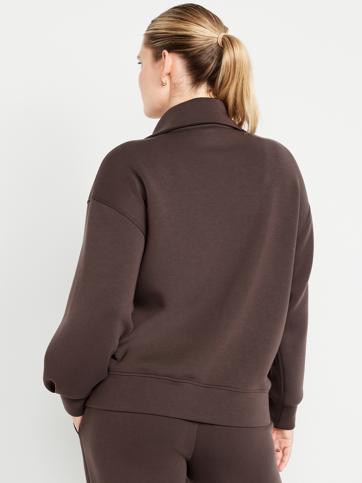 Maternity Bounce Fleece Half-Zip Pullover: Featuring Bounce Fleece. A smooth, cooling finish that feels good and looks chic everywhere you go.half-zip funnel neck, long drop-shoulder sleeves with pleated cuffs, on-seam pockets, easy pullover style, breathable, #826400