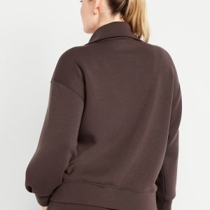 Maternity Bounce Fleece Half-Zip Pullover: Featuring Bounce Fleece. A smooth, cooling finish that feels good and looks chic everywhere you go.half-zip funnel neck, long drop-shoulder sleeves with pleated cuffs, on-seam pockets, easy pullover style, breathable, #826400