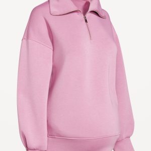 Maternity Bounce Fleece Half-Zip Pullover: Featuring Bounce Fleece. A smooth, cooling finish that feels good and looks chic everywhere you go.half-zip funnel neck, long drop-shoulder sleeves with pleated cuffs, on-seam pockets, easy pullover style, breathable, #826400