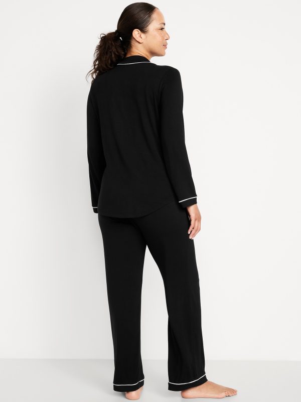 Maternity Classic Pajama Set: set includes pajama shirt and matching pants, notched collar, long sleeves, three-button popover placket, patch chest pocket, foldover-waist pajama pants for pull-on styling, #601460