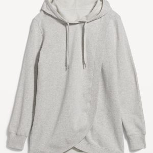 Maternity Cross-Front Nursing Pullover Hoodie: adjustable drawstring hood, long sleeves, rib-knit cuffs, cross front for convenient nursing access, rib-knit front and hem, pullover style, #578188