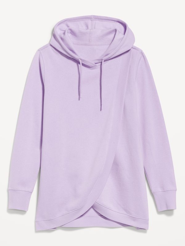 Maternity Cross-Front Nursing Pullover Hoodie: adjustable drawstring hood, long sleeves, rib-knit cuffs, cross front for convenient nursing access, rib-knit front and hem, pullover style, #578188