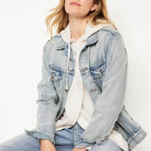 Maternity Cross-Front Nursing Pullover Hoodie: adjustable drawstring hood, long sleeves, rib-knit cuffs, cross front for convenient nursing access, rib-knit front and hem, pullover style, #578188