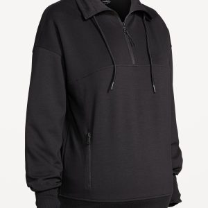 Maternity Dynamic Fleece Half Zip: Featuring Dynamic Fleece. Soft, smooth fleece plus made-to-move stretch.drawstring funnel neck, long sleeves, thumbhole cuffs, half-zip front, zip pockets, rib-knit trim, pullover style, #596853