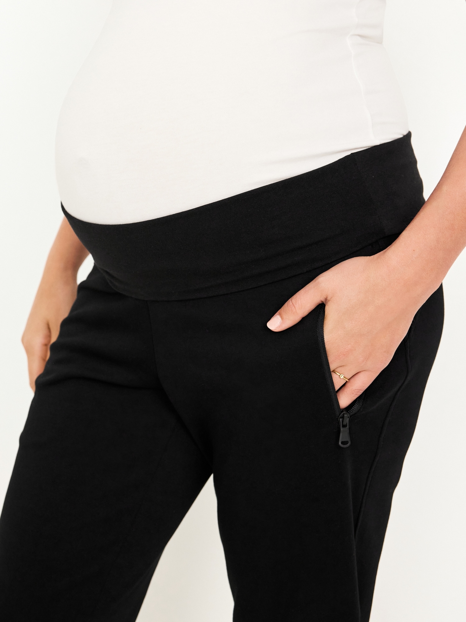 Maternity Dynamic Fleece Rollover Waist Joggers: rollover waistband, faux fly, zippered hip pockets, ribbed ankle cuffs, #547692