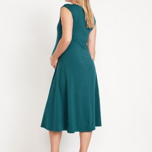 Maternity Fit & Flare Midi Dress: perfect for baby shower, scoop neck, sleeveless, #719636