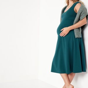 Maternity Fit & Flare Midi Dress: perfect for baby shower, scoop neck, sleeveless, #719636