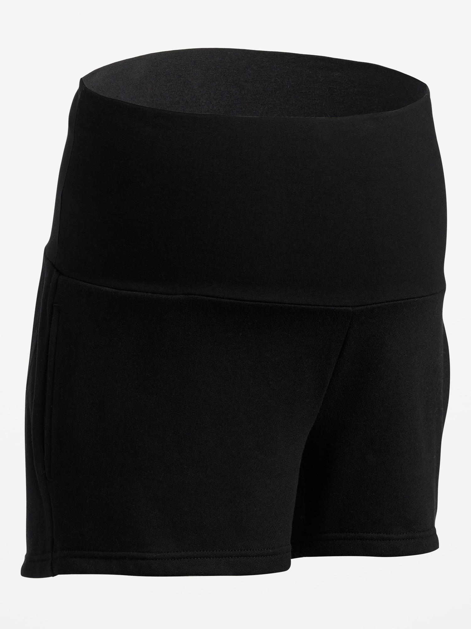 Maternity Foldover-Waist Shorts — 3-inch inseam: Elasticized rollover waistband., Diagonal on-seam pockets at front., Cozy, soft-washed french terry., Easy, pull-on style., #881427