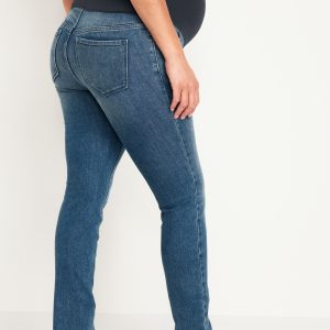 Maternity Front Low-Panel OG Straight Jeans: Our maternity OG Jeans? Think “mom jeans” …if your mom was effortlessly chic. Part ‘90s nostalgia, part new-normal comfort, served straight up with enough roominess for cool comfort. 😎, Maternity front low-panel jeans have a smooth elastic jersey panel in front for support, with a regular waistband in back, just like your fave pair., Faux fly, with scoop and coin pockets at front; Patch pockets at back., Cutoff hem., Durable, medium-wash cotton-denim, with a smidge of stretch for that broken-in fit., Made with 11% polyester and 5% recycled cotton. Less waste in the world 🌎, #759157