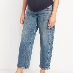 Maternity Full Panel Barrel Ankle Jeans: The effortless curved shape that’s so hot right now.full panel waistband, faux fly, barrel leg, scoop pockets, back patch pockets, #826440