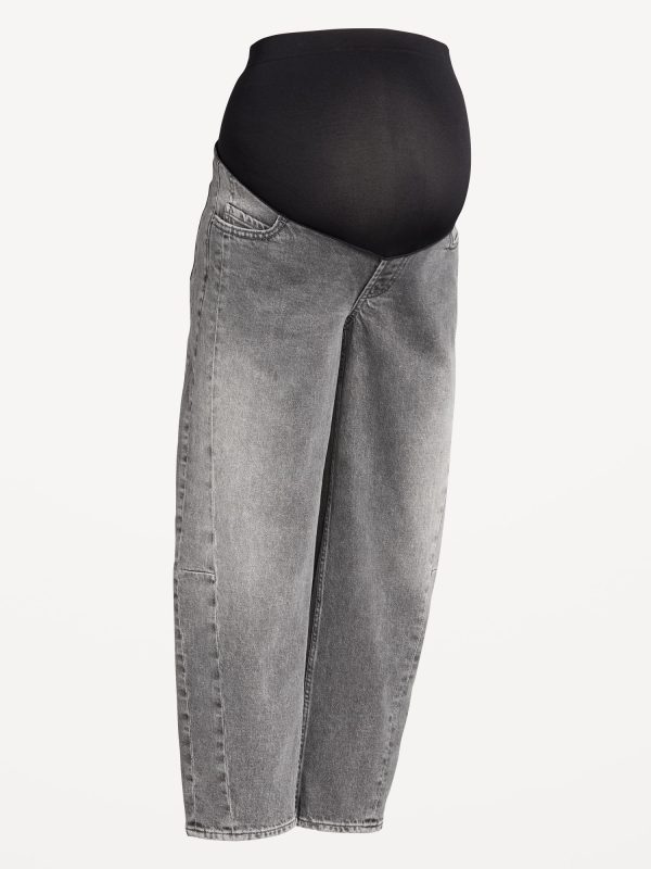 Maternity Full Panel Barrel Jeans: The effortless curved shape that’s so hot right now.full panel waistband, faux fly, barrel leg, scoop pockets, back patch pockets, #826440