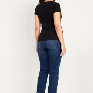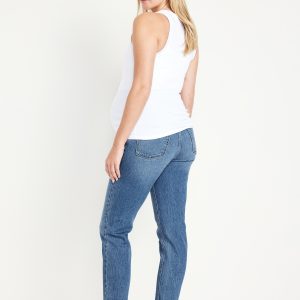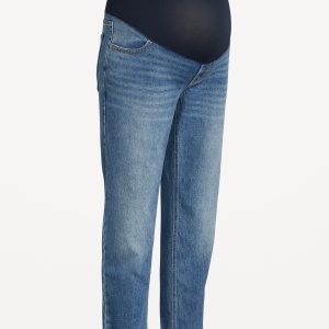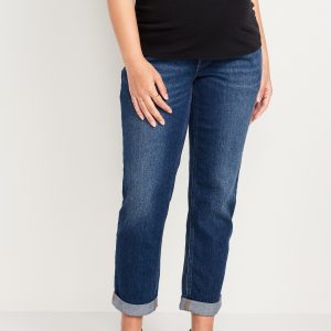 Maternity Full Panel Boyfriend Jeans: full panel waistband, faux fly, front scoop pockets, back patch pockets, straight leg, #719611