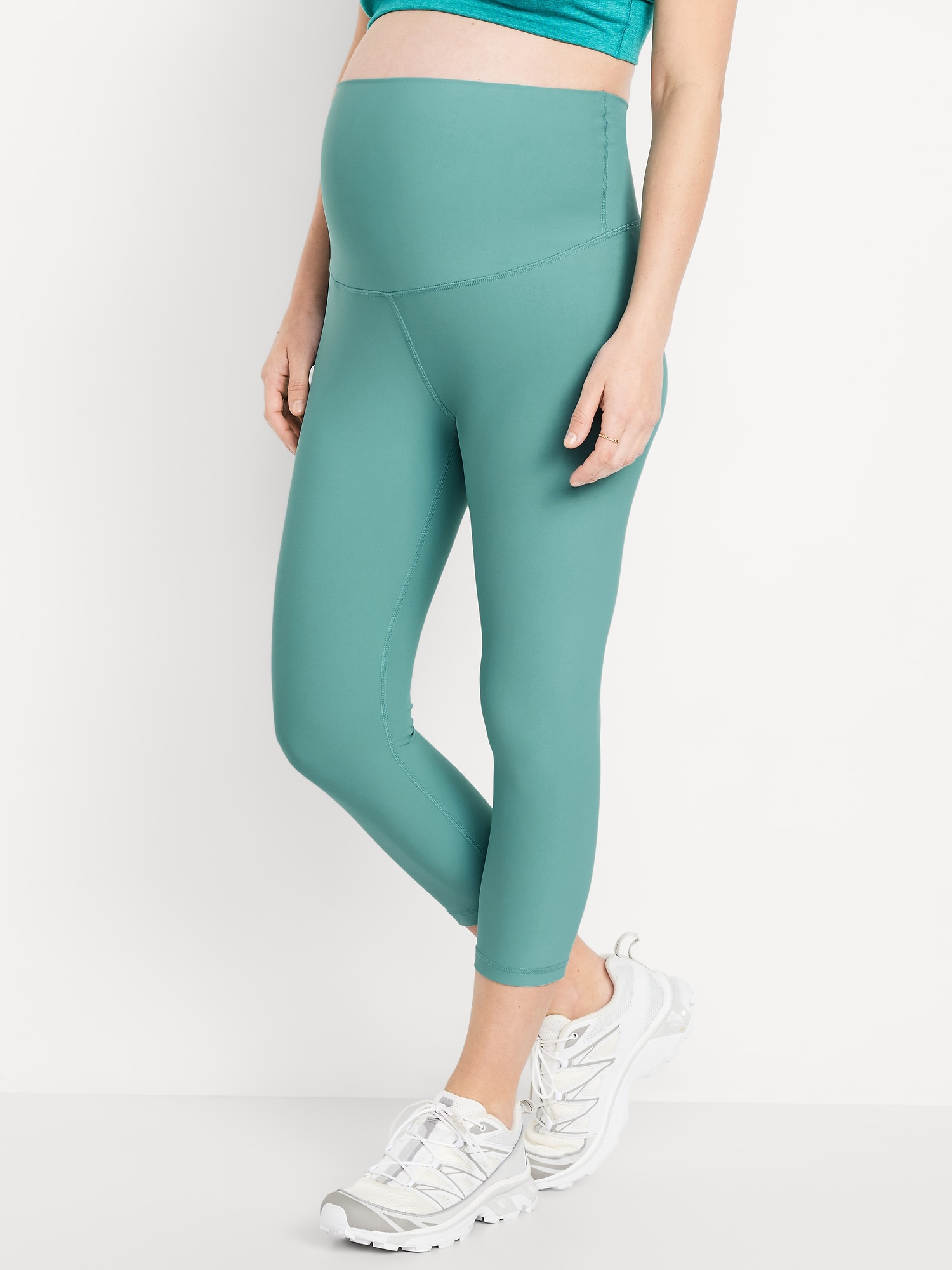 Maternity Full-Panel PowerSoft Crop Leggings: Featuring PowerSoft, light compression with a peachy-soft feel.full panel stretches over belly, side pockets, go-dry wicks moisture, #962148