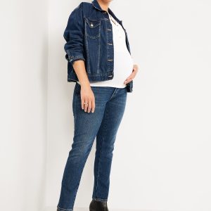Maternity Full-Panel Vintage Slim Jeans: full panel, scoop pockets with back patch pockets, whiskering, #826445