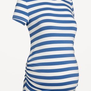 Maternity Graphic Side-Shirred T-Shirt: rib-knit crew neck, short sleeves, shirred sides for a flexible fit, tag-free label, #817054