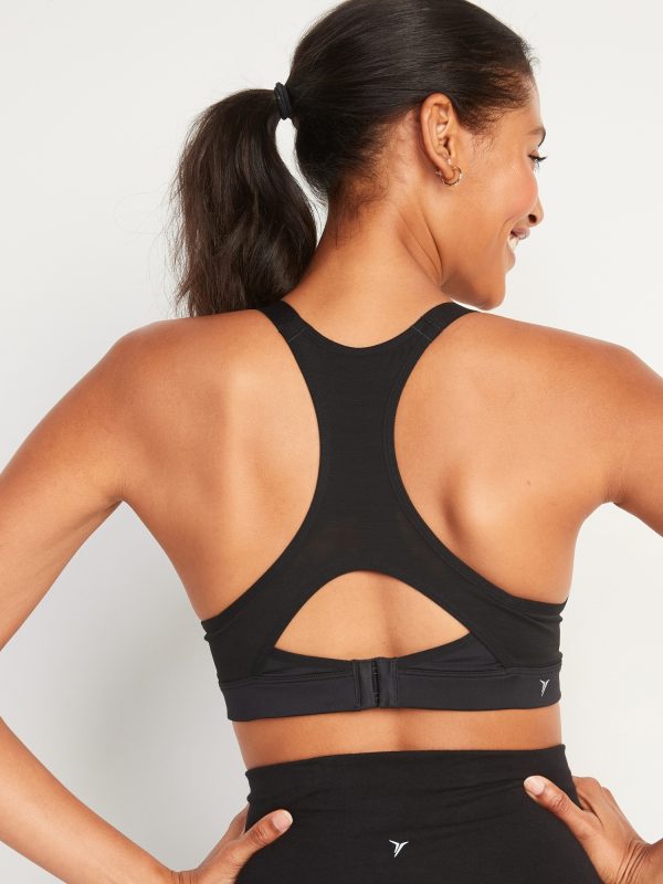 Maternity High Support Nursing Sports Bra: Wide adjustable shoulder straps, with detachable clips for convenient nursing access., Sweetheart neckline, with breathable mesh racerback., Built-in shaped cups., Banded elastic hem, with adjustable hook-and-eye strap at center back for easy wear & a personalized fit., Go-Dry moisture-wicking technology keeps you dry & comfortable., #687235